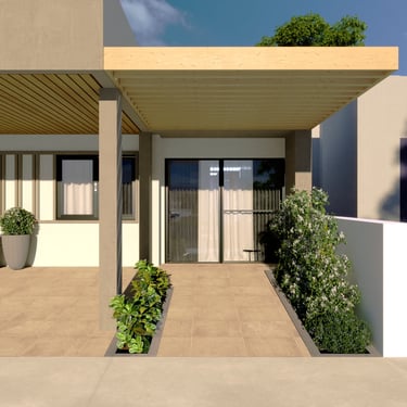 Projeto Arquitetônico feito em Feira de Santana - Bahia, foi feita para uma familia pensada no conforto e personalidade da família. A fachada foi pensada de forma que trouxesse elegância, planejado da forma como o cliente idealizava, criando uma área confortável para ser o primeiro local a receber a família, dando uma sensação de lar. Foi trabalho cores neutras para trazer elegância junto com o madeiramento do forro e do pergolado trás uma humanização e agrado visual.