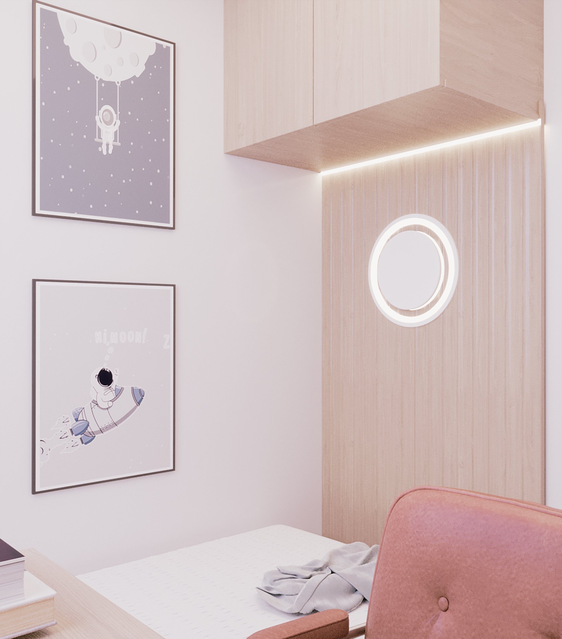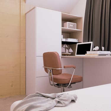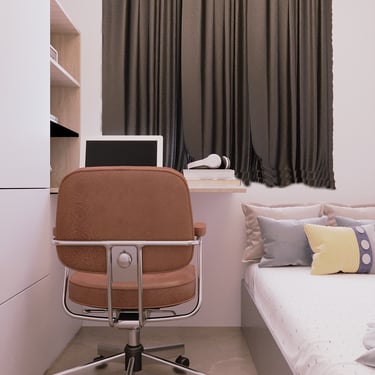 Projeto planejado para um jovem, o espaço era limitado e foi aproveitado da melhor forma possível, utilizando de armários nas paredes para poder se ganhar espaços de circulação, quarto também fica embaixo da escada e foi disposto o armário apropriado ao espaço que se tinha disponível. Todas as marcenarias foram planejadas nos mínimos cuidados, ficando ela como elemento que desse uma composição e não servisse só para aquela função, mas para que ficasse fazendo parte da obra.