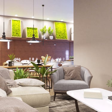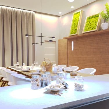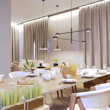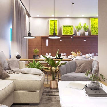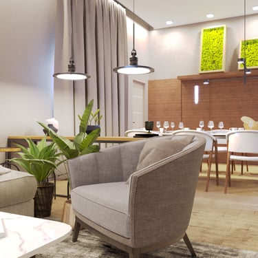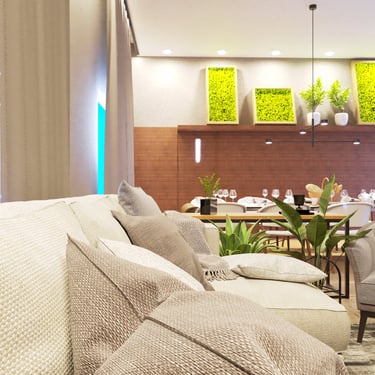 Arquitetura de Interiores para um ambiente integrado, onde a sala de estar, jantar e cozinha se comunicam. Foi desenvolvido o projeto arquitetônico anteriormente (também de minha autoria) e agora os projetos de arquitetura de interiores para complementar. Ambos foram planejados para conversar entre si, onde se tem o maior aproveitamento da iluminação natural, trabalhando com cores mais neutras, para dar um ar mais leve com a iluminação, também foram inseridas algumas vegetações para poder dar cor e trazer ambientes mais humanizados, em conversa com o natural, trazendo mais conforto e aconchego no local.