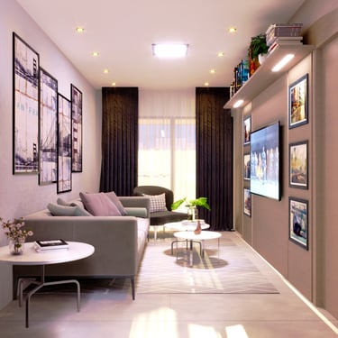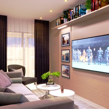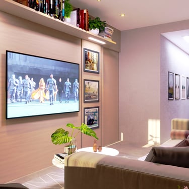 Esse projeto foi pensado para criar um ambiente vivo, capaz de contar uma história ao ser visitado. A presença de tons quentes foi utilizada para trazer conforto e acolhimento ao espaço, enquanto as cores foram inseridas na medida certa, principalmente por meio dos acessórios, criando pontos de destaque no ambiente. A composição foi desenvolvida de forma a gerar harmonia entre os elementos fixos e os móveis, permitindo que cada peça dialogue entre si e contribua para uma atmosfera equilibrada. O mobiliário planejado e a disposição dos elementos ajudam a organizar o espaço e valorizar sua funcionalidade. Além disso, a iluminação e os elementos decorativos foram pensados para destacar texturas, quadros e objetos, trazendo mais personalidade ao ambiente. O resultado é um espaço acolhedor, visualmente agradável e ideal tanto para momentos de descanso quanto para receber visitas.