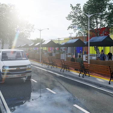 Instalação de parklets, bancos e nova iluminação para promover conforto, segurança e permanência;