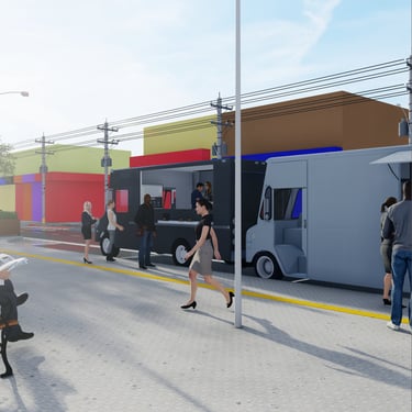 Principais ações: Requalificação da praça, com áreas de lazer (playground, skate, coreto reformado como quiosque), espaço para feira livre e uso alternativo com food trucks;