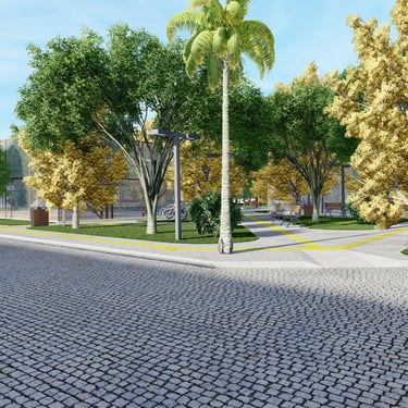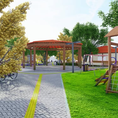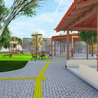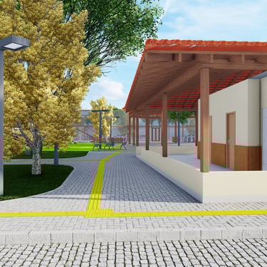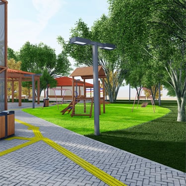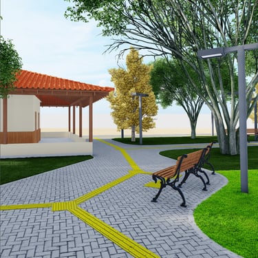 Esse projeto foi feito para o município de CF- BAHIA, criação de uma área de lazer em um dos bairros da cidade, essa praça foi repaginada para melhorar os usos que ela já tem atualmente, é um local com muita visitação da população de diversas faixas etárias, para realizar caminhadas, jogar bola, brincar no parque que já existia, e até frequentar o quiosque que foi acrescentado a pouco tempo. O projeto foi pensado em melhorar os seus usos, colocando um local para o pessoal jogar bola, futevôlei, sem o risco das bolas ficarem batendo em carros ou na casa dos arredores, foi também colocado bicicletário para o incentivo de uso de bicicletas. Toda praça foi pensada na saúde, lazer e valorização do espaço para população.