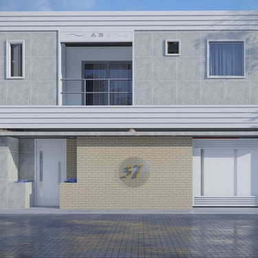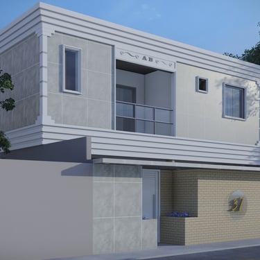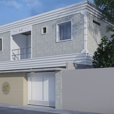 Projeto de intervenção na fachada da casa e do muro tinha uma proposta de trazer uma leveza para a residência, e uma mistura de estilos arquitetônicos, o estilo da arquitetura grega, moderna e rústica, tudo em plena harmonia, sendo uma arquitetura totalmente eclética. Dando um brilho a essa residência.