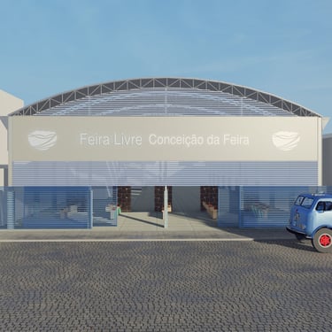 Este projeto foi desenvolvido com o objetivo de valorizar e revitalizar uma área central em uma cidade do interior da Bahia, que atualmente abriga uma feira livre. A proposta busca preservar a identidade original do local, mantendo o posicionamento da cobertura existente, mas adicionando elementos visuais nas fachadas de cada entrada. Para o letreiro, foi especificado o uso de chapa de ACM, enquanto brises diagonais em barras de ACM foram projetados para serem instalados na horizontal. Esses brises não apenas aprimoram a estética, mas também resolvem o problema de infiltração de água durante chuvas com ventos fortes. Além disso, foi inserido um fechamento lateral em telhas, sustentado por estrutura metálica, para reforçar a proteção contra a chuva, considerando a altura elevada da cobertura. A proposta foi pensada para se integrar harmoniosamente ao entorno e valorizar ainda mais o município, agregando valor à área central e promovendo o desenvolvimento local.