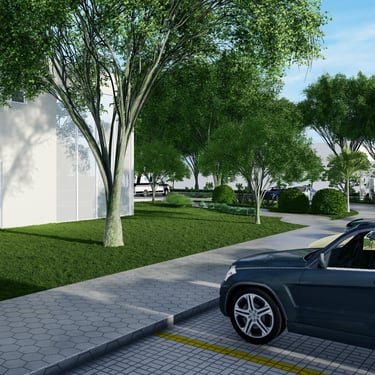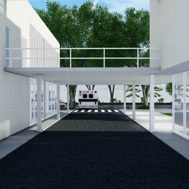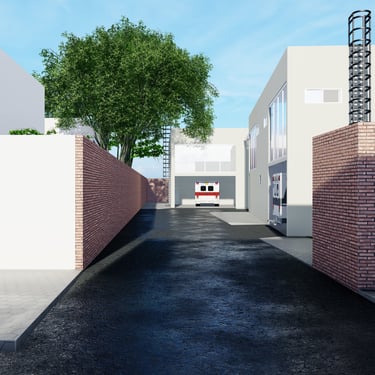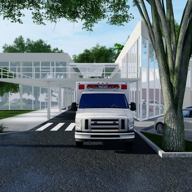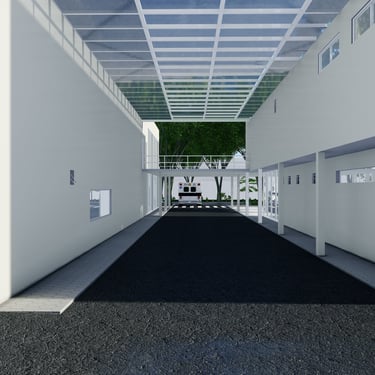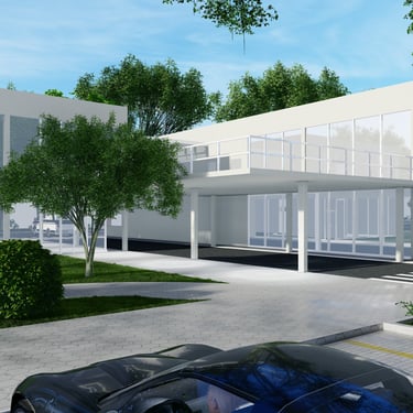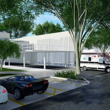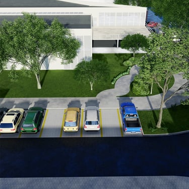 Projeto acadêmico realizado por Paulo Alves e Caio Araújo, alunos do 6° semestre de Arquitetura e Urbanismo da UNEF, sob a orientação do professor e arquiteto Filipe Albuquerque. Desenvolvemos o projeto em um terreno localizado no cruzamento da Av. Francisco Fraga Maia com a Rua Miranda, em Feira de Santana, Bahia. A proposta era criar uma clínica cardiológica com medicina nuclear, oferecendo atendimento para pacientes de todas as idades, com foco em acessibilidade, segurança e conforto. A clínica foi organizada em dois blocos: o maior, à direita, abriga o setor cardiológico, enquanto o menor, à esquerda, é destinado à medicina nuclear, garantindo a segurança por conta do isolamento da área de radiação. Demos prioridade à iluminação e ventilação naturais, minimizando o uso de energia elétrica. Criamos uma rua interna para não impactar o trânsito local e elaboramos um projeto de paisagismo para melhorar a ventilação, criar sombras e embelezar o ambiente, proporcionando um espaço mais agradável e acolhedor para os pacientes.