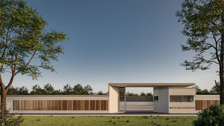 Projeto feito para a fachada frontal/principal de um condomínio, onde a ideia era aproveitar a estrutura antiga, e realizar mudanças pontuais de forma que não torna-se muito elevado o orçamento da obra. Foi pensado de forma que trouxesse leveza, harmonia, e uma composição agradável aos olhos. Foi utilizado volumes e brises para dar um diferencial nessa estrutura, trazendo mais segurança a essa rua a qual o condomínio pertence, onde os pedestres não iriam se deparar com muros altos e sem visibilidade, trabalhando de uma forma que nesse local pudesse ser um diferencial e colocar em pratica "os olhos nas ruas", dando assim mais segurança aos moradores e a todos que passam por ai.