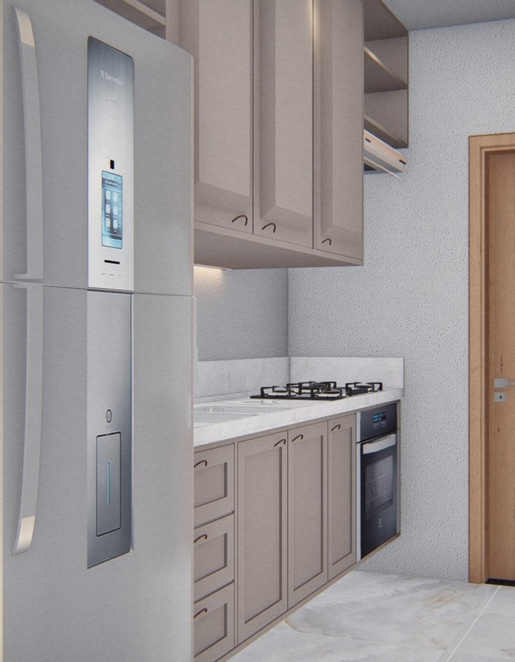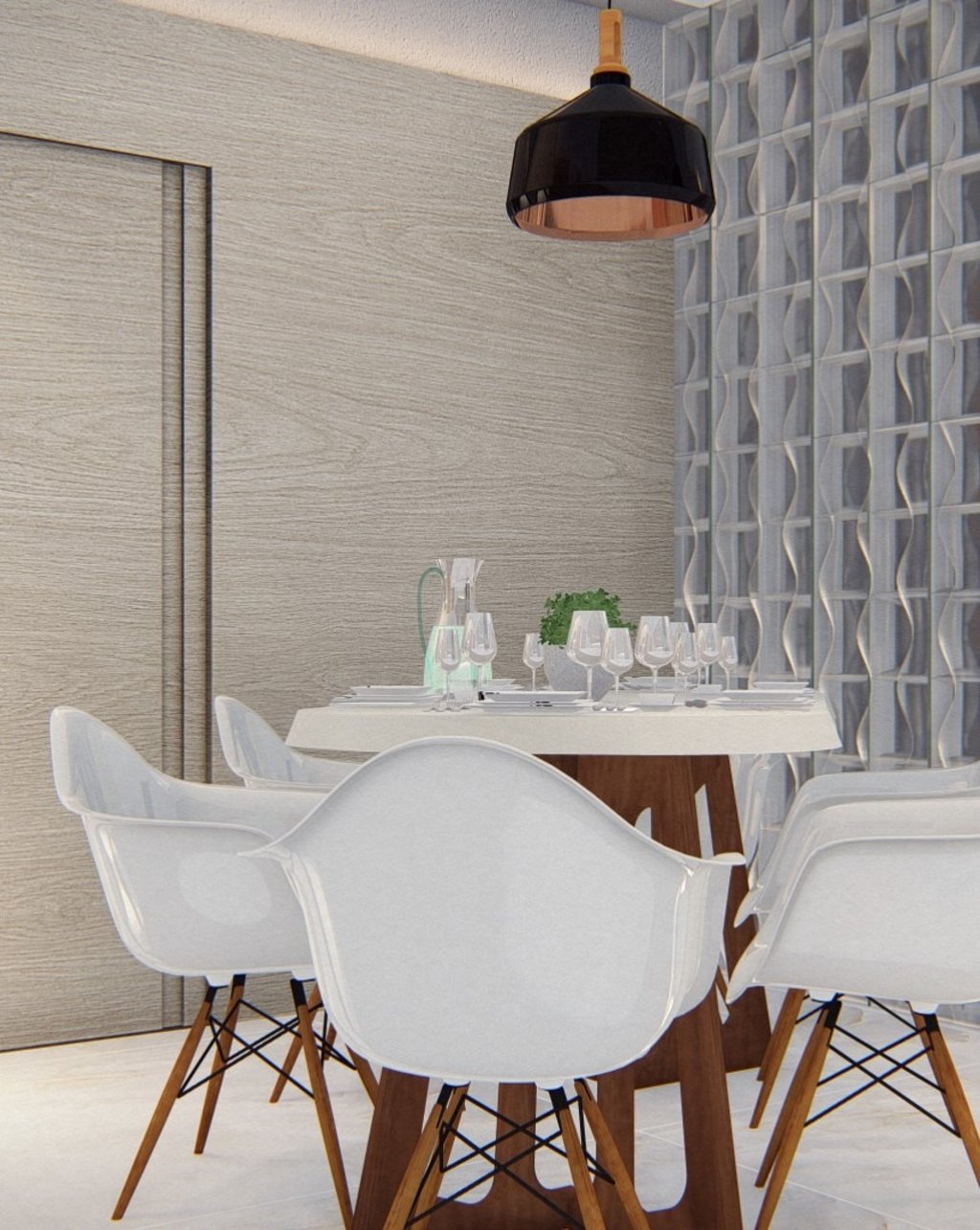 Esse projeto foi desenvolvido em um ambiente integrado, tendo a comunicação/ligação entre a sala de estar, jantar e cozinha, trabalhando com cores neutras e usando só móveis para dar uma vida aos ambientes, dando destaques e tornando-se fontes de admiração.