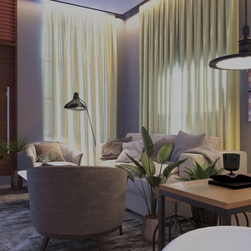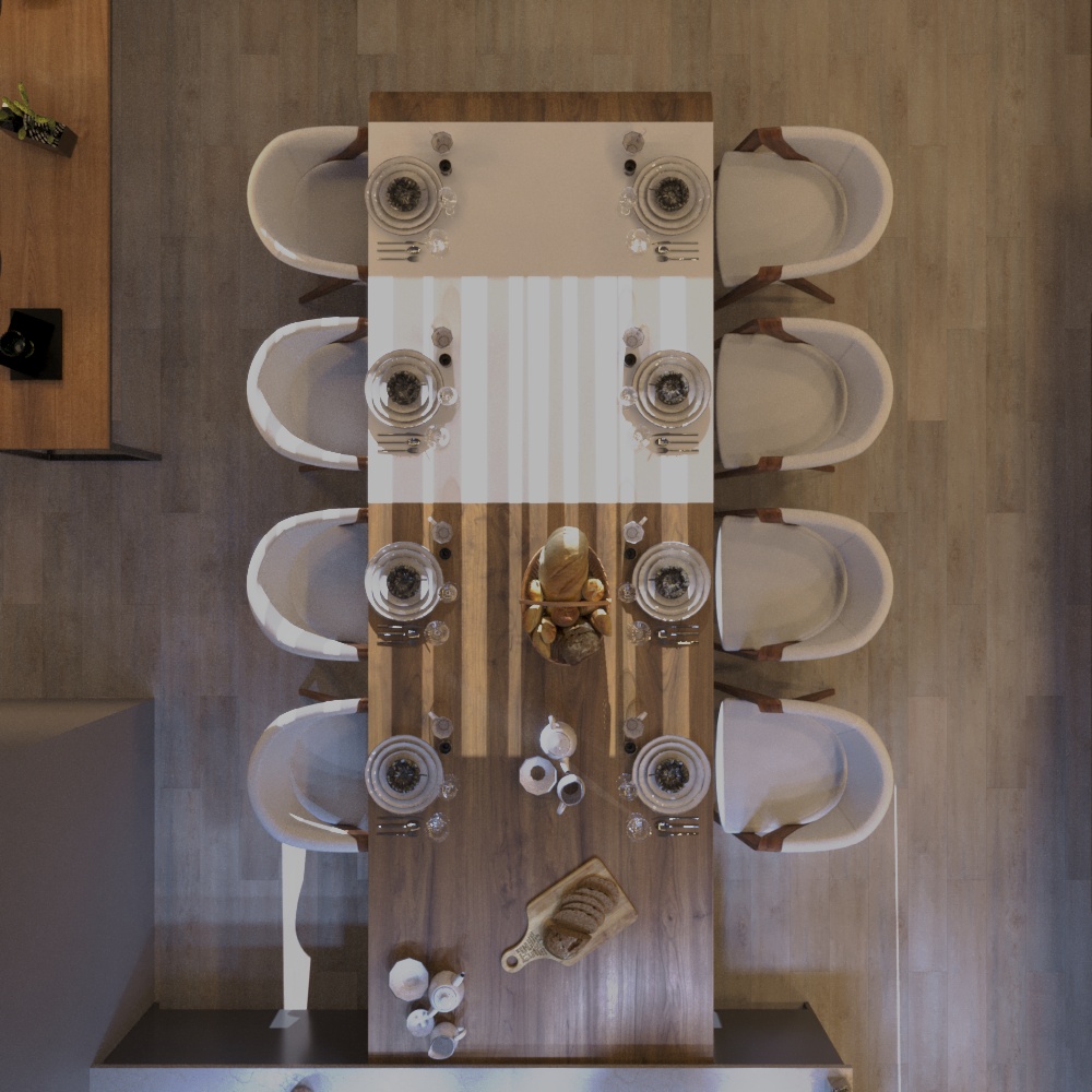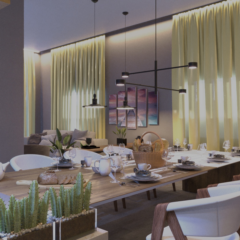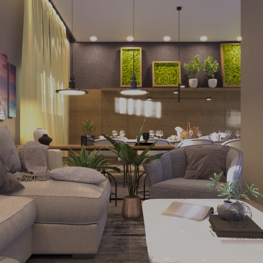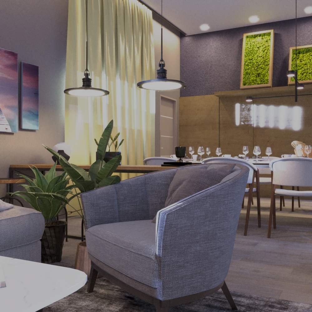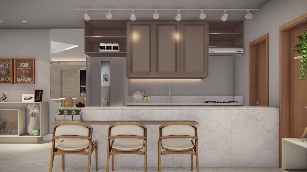 Arquitetura de Interiores para um ambiente integrado, onde a sala de estar, jantar e cozinha se comunicam. Foi desenvolvido o projeto arquitetônico anteriormente (também de minha autoria) e agora os projetos de arquitetura de interiores para complementar. Ambos foram planejados para conversar entre si, onde se tem o maior aproveitamento da iluminação natural, trabalhando com cores mais neutras, para dar um ar mais leve com a iluminação, também foram inseridas algumas vegetações para poder dar cor e trazer ambientes mais humanizados, em conversa com o natural, trazendo mais conforto e aconchego no local.