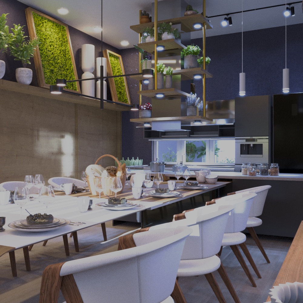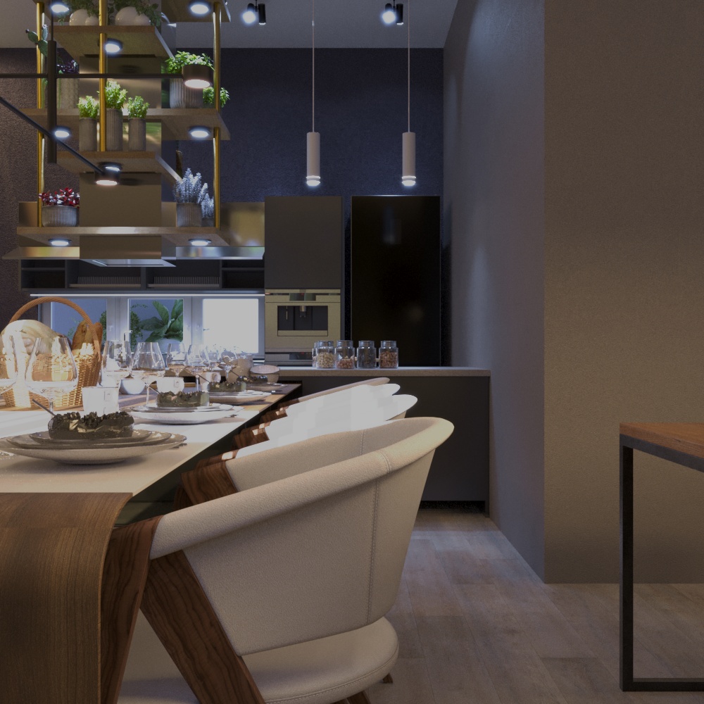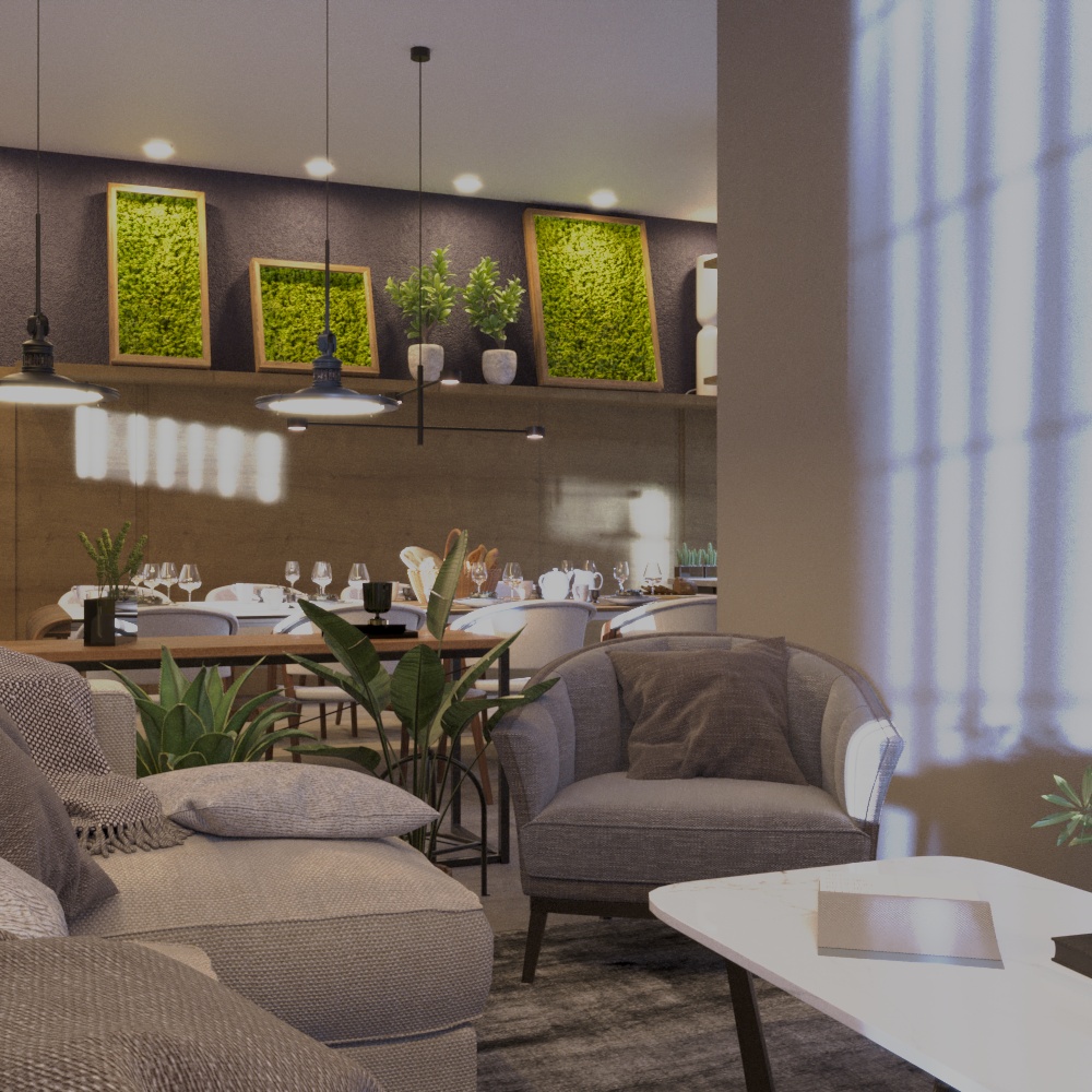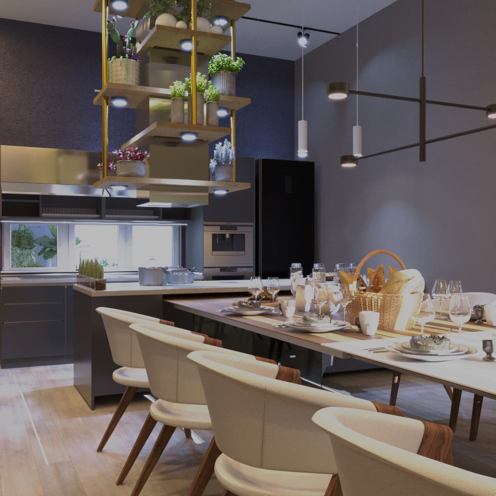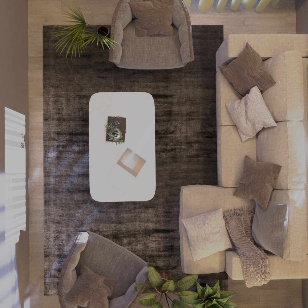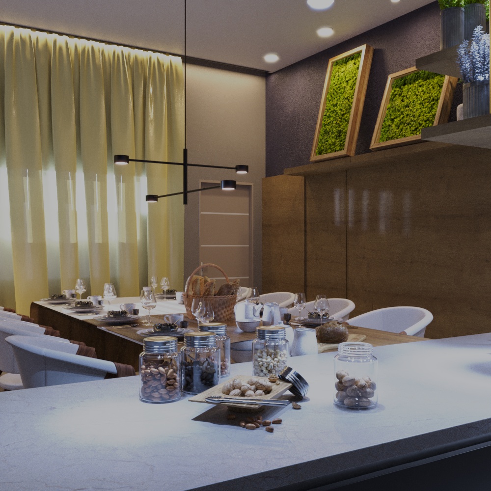 Arquitetura de Interiores para um ambiente integrado, onde a sala de estar, jantar e cozinha se comunicam. Foi desenvolvido o projeto arquitetônico anteriormente (também de minha autoria) e agora os projetos de arquitetura de interiores para complementar. Ambos foram planejados para conversar entre si, onde se tem o maior aproveitamento da iluminação natural, trabalhando com cores mais neutras, para dar um ar mais leve com a iluminação, também foram inseridas algumas vegetações para poder dar cor e trazer ambientes mais humanizados, em conversa com o natural, trazendo mais conforto e aconchego no local.