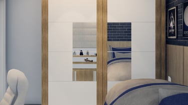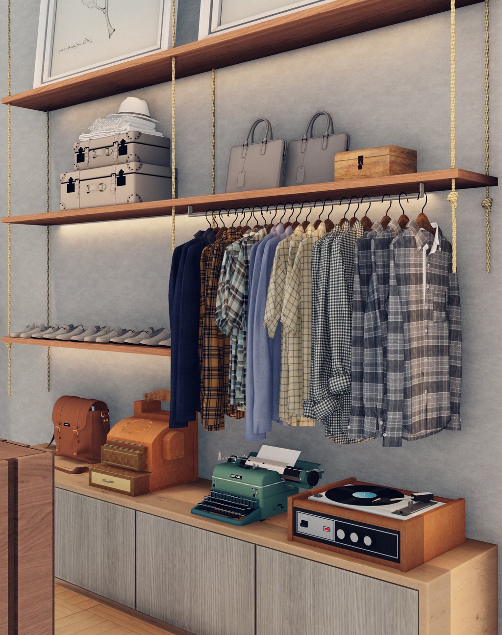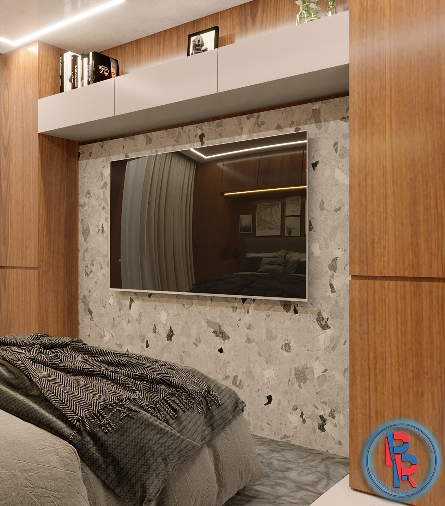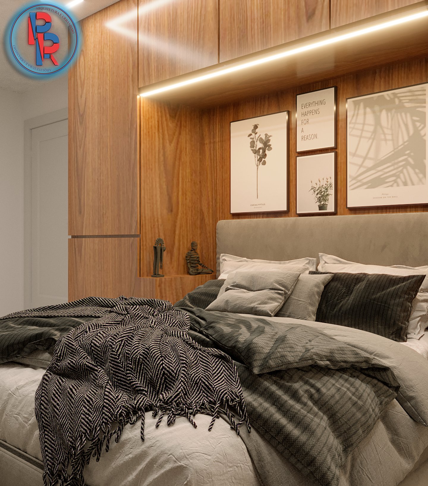 Projeto planejado para um jovem, o espaço era limitado e foi aproveitado da melhor forma possível, utilizando de armários nas paredes para poder se ganhar espaços de circulação, quarto também fica embaixo da escada e foi disposto o armário apropriado ao espaço que se tinha disponível. Todas as marcenarias foram planejadas nos mínimos cuidados, ficando ela como elemento que desse uma composição e não servisse só para aquela função, mas para que ficasse fazendo parte da obra.