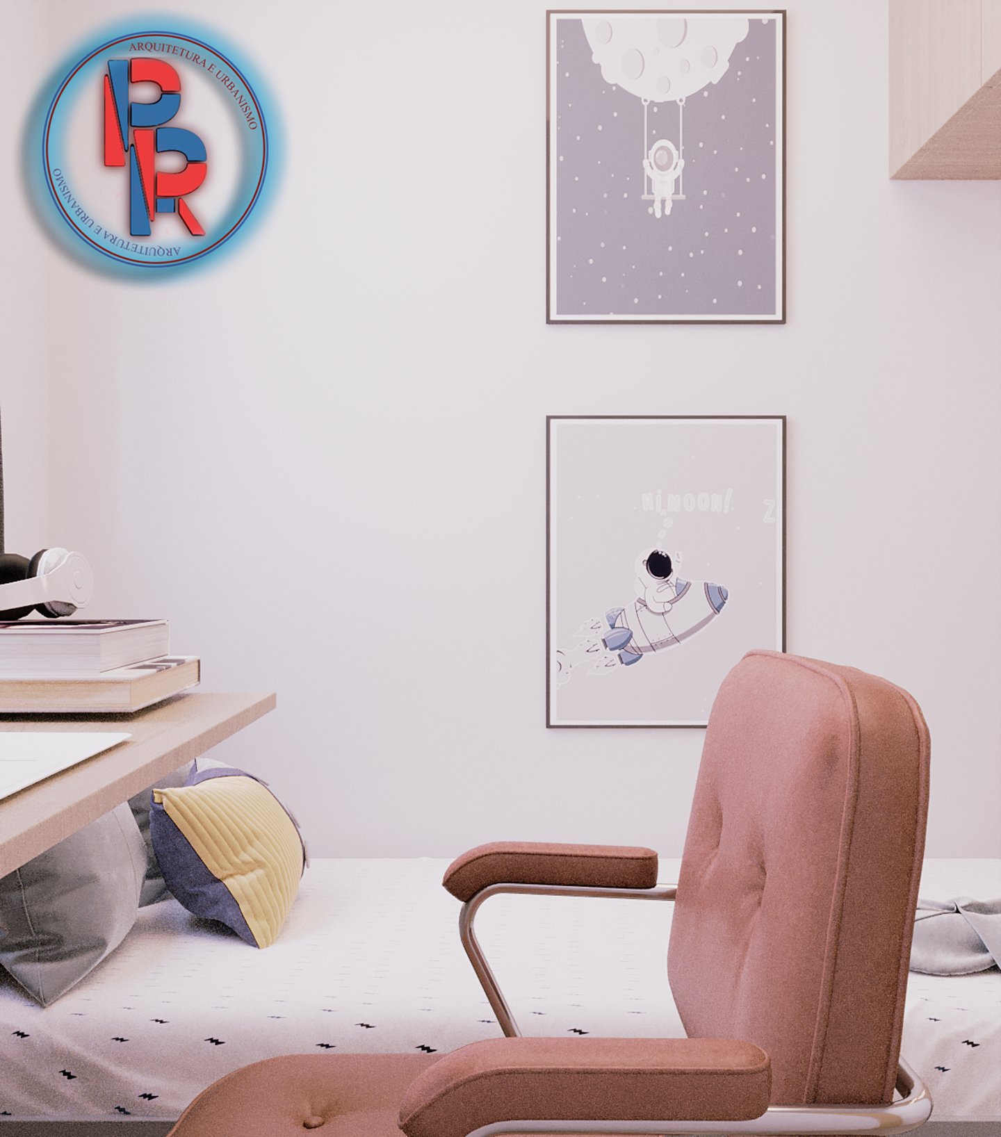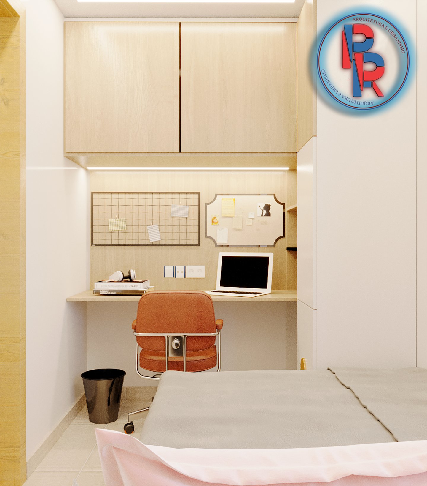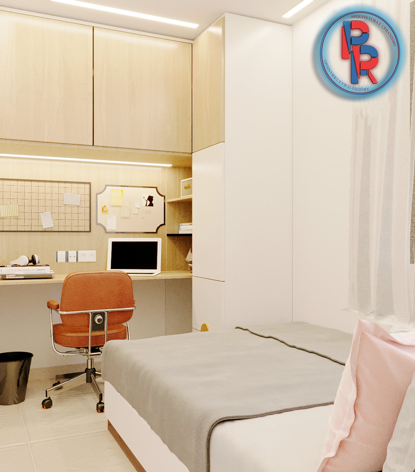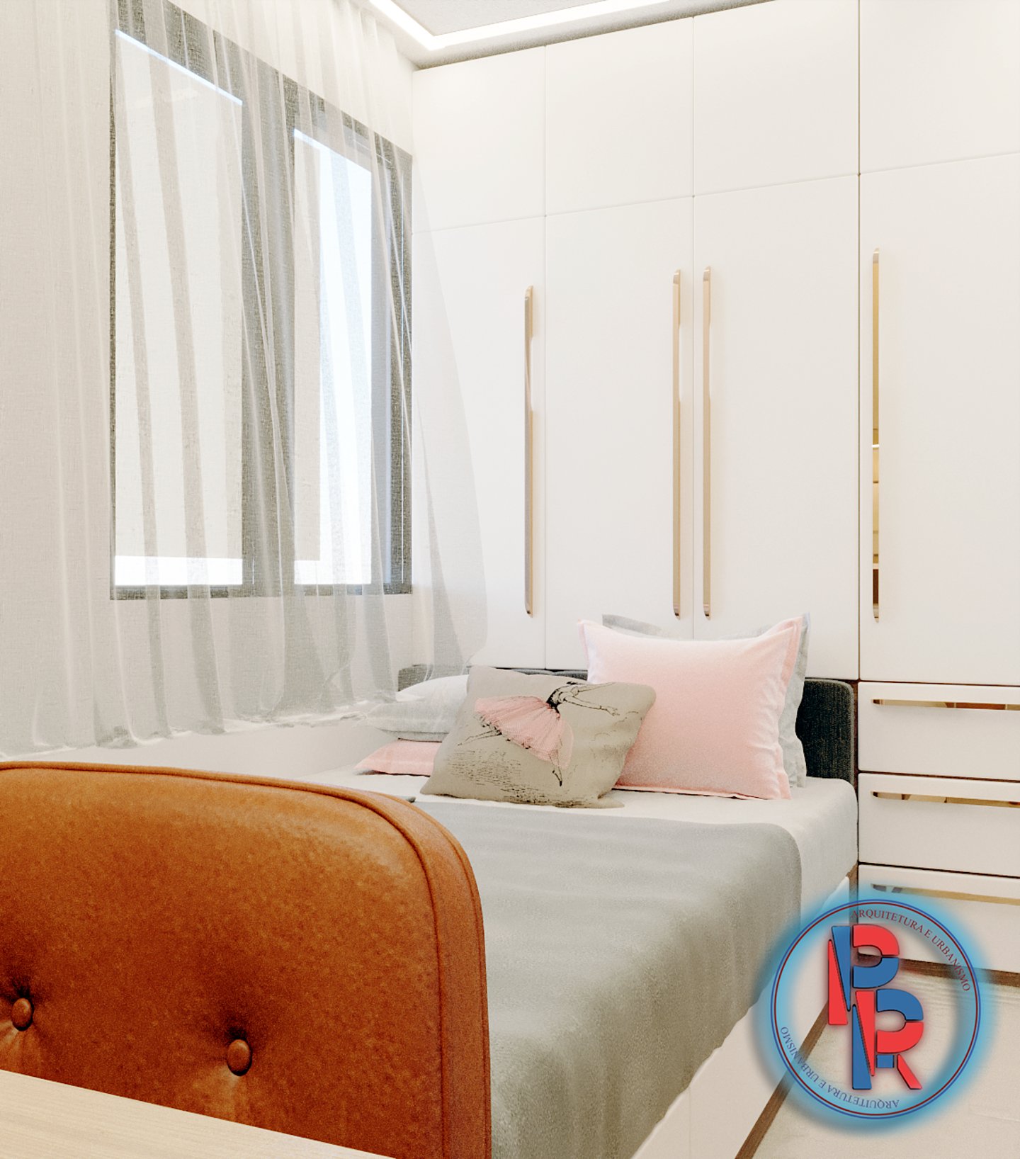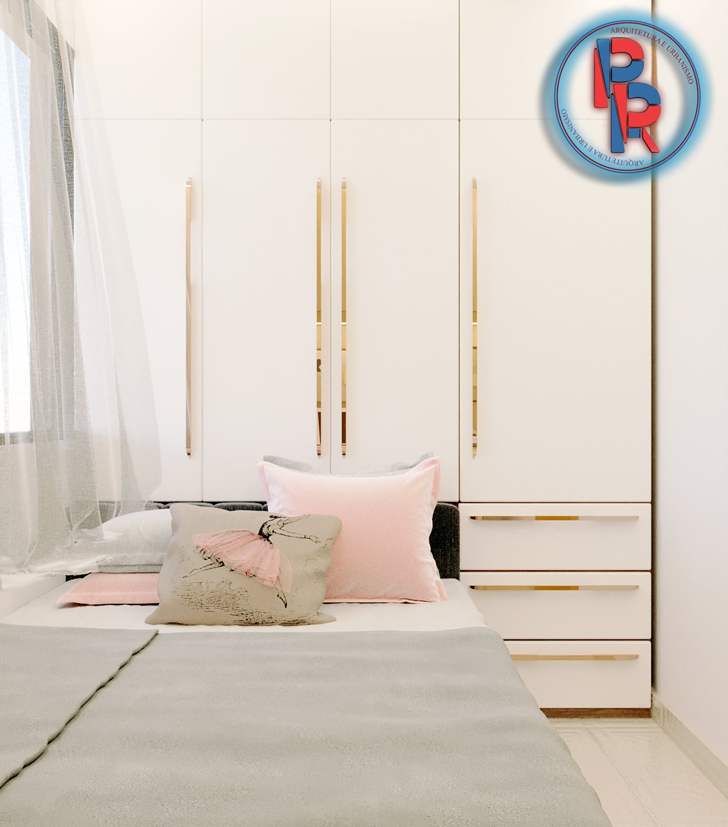Quarto planejado para uma jovem, o ambiente não dispunha de muito espaço para se trabalhar, mas a disposição foi planejada de forma que mesmo o espaço sendo restrito, ficasse confortável e funcional. A paleta de cores foi escolhida de forma que se não desse sensação de enclausuramento devido ao pouco espaço, trazendo sensação de amplitude, e os móveis se tornam o charme do local, trazendo leveza, beleza e funcionalidade, aproveitando cada espaço do quarto de forma que não obstrua a circulação.