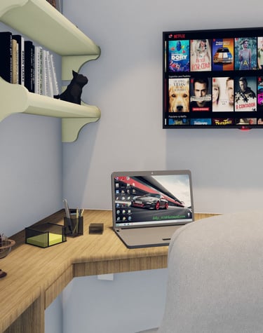 Projeto de Arquitetura de Interiores - Móvel Planejado destinado a atender as necessidades do cliente, trazendo um local de conforto e aconchego para trabalhar e armazenar todos os pertences do cliente, com múltipla funcionalidade. Trazendo harmonia com os móveis já existentes e leveza ao ambiente.