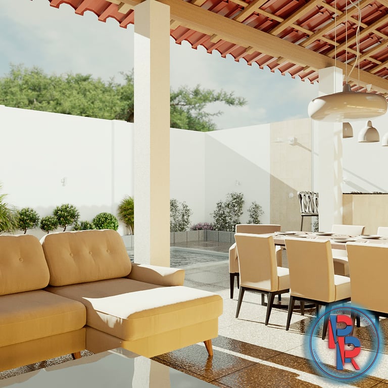 Projeto de área de lazer planejado para uma casa onde se tem área gourmet e a cozinha mescladas internamente, foi colocado a churrasqueira na área externa para poder evitar que se se tivesse fumaça dentro da casa. Também foi planejado um deck para ficar sobre o solo, de uma forma que não afetasse a permeabilidade dele, foi inserido uma piscina para se refrescar e aproveitar com a família.