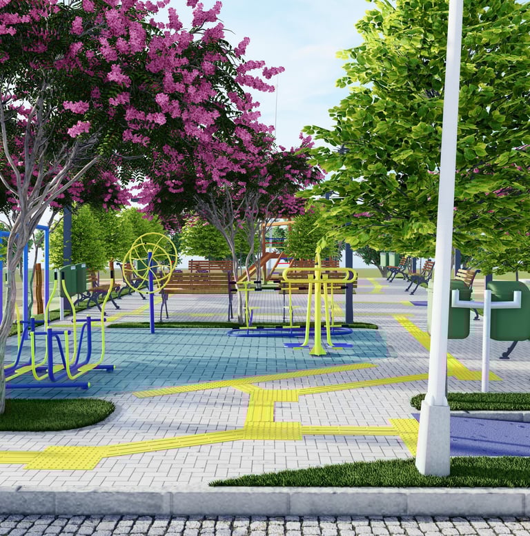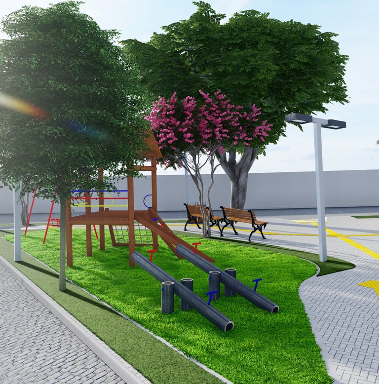 Nossos projetos priorizam áreas verdes, mobiliário urbano confortável, iluminação eficiente e elementos que incentivem atividades ao ar livre, como playgrounds, equipamentos de ginástica e espaços para eventos culturais. Cada praça é planejada para fortalecer o senso de pertencimento e contribuir para a qualidade de vida no ambiente urbano.